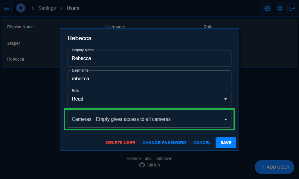Viseron supports different roles for users, allowing for varying levels of access and control.